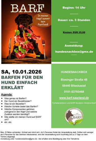 Wir sind Ihr kompetenter Ansprechpartner, wenn es um das Thema "BARFEN" geht. Als Ernährungs-beraterin nach Swanie Simon sowie als Tierheilpraktikerin erhalten Sie bei uns im Futterparadies eine fachkundige Kaufberatung rund um unsere Produkte, um Ihren Hund artgerecht und sicher nach dem BARF-Prinzip zu ernähren.