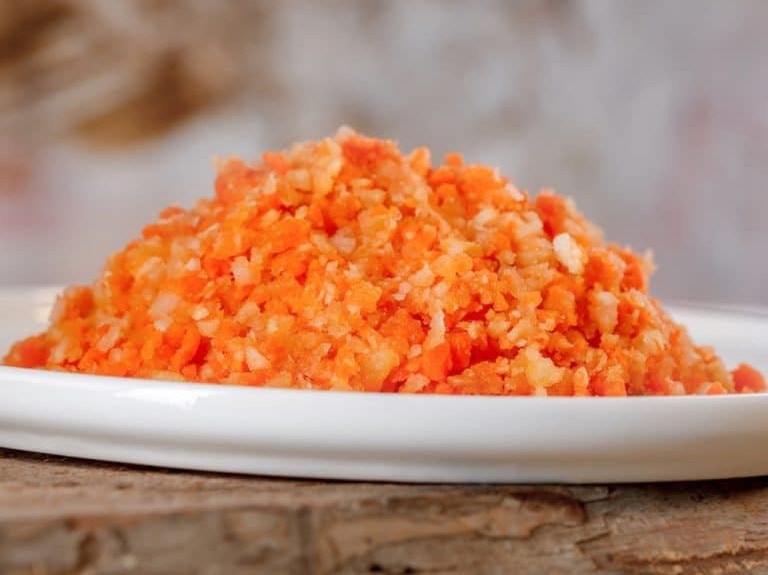 roter Früchtemix fein geraspelt (Möhre, Pastinake, Sellerie und Steckrübe)
