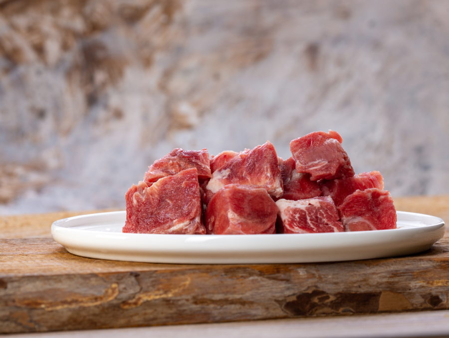Ziegen-Muskelfleisch durchwachsen in Stücken